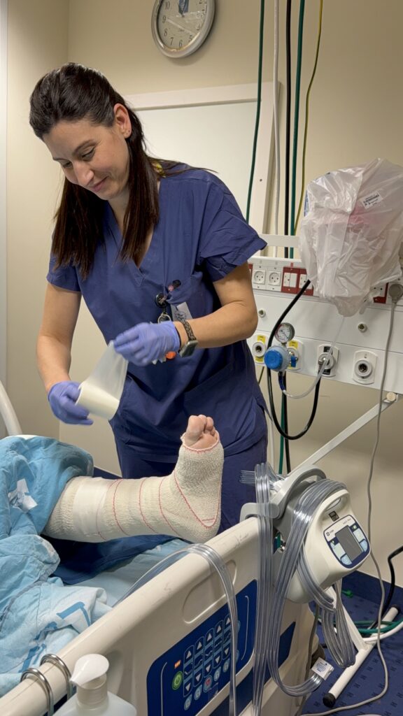 “I tried very hard not to step on my foot, but I probably wasn’t completely disciplined,” she says with a smile. “And then a more significant fracture occurred, and all of this was only because of my unnecessary fall on the way to the safe room. This time, the doctors made it clear to me that I needed surgery to reset the bones.”