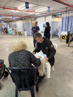 Majd, 48, a father of four, is the security guard on behalf of the Yamit company and ensures the safety of patients. He discovered that one of the patients was restless and anxious because her family members had not yet arrived. He approached her and, with genuine warmth, sat down to draw with her until she calmed down.